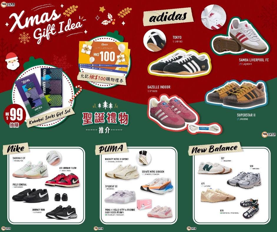 【XMAS Gift Idea 聖誕禮物推介】 距離聖誕節剩返一個星期咋!! 有冇仲未買聖誕禮物嘅deadline fighter? 小編幫緊你幫緊你~ 今期為你推介來自各大品牌嘅產品,包括多個人氣鞋款!送畀家人、朋友、伴侶都唔會出錯嘅送禮選擇 除咗各品牌產品之外,小編私心再推介兩個禮物選擇畀你 HK$99 換購 Kahakai 禮襪套裝:設有兩個不同尺寸與花紋,貼合不同喜好與需求 HK$100 允記購物禮券:最實用禮物沒有之一 *各分店有更多款式,詳情請向分店職員查詢 *價格以店舖為準 允記各分店: https://bit.ly/2SMwm3r