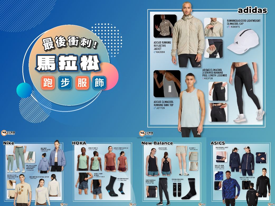 【最後衝刺!馬拉松跑步服飾】 話咁快踏入1月,仲有唔夠兩個星期就係渣馬啦 有冇跑手們仲未準備好你嘅「戰衣」?今期推介就啱晒你啦 上至長褲、風褸,下至背心、短褲,小編都幫你一條龍準備好晒 唔好講咁多,即刻入嚟睇吓有咩精選跑步服飾,去門市選購適合你嘅款式啦 *所有款式於允記各分店有售 *各分店有更多款式,詳情請向分店職員查詢 *價格以店舖為準 允記各分店: https://bit.ly/2SMwm3r