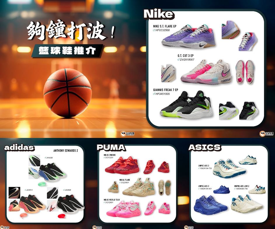 【夠鐘打波!籃球鞋推介】 全運會籃球賽熱烈進行中!係咪睇到熱血沸騰,想即刻著返對「戰靴」落場打埋一份呢? 對一眾波友嚟講,速度、穩定性、支撐力及舒適度係球場上嘅制勝關鍵,籃球鞋就係最大秘密武器 今期小編為你整合各大品牌嘅籃球鞋款,總有一對令你喺籃球場上發揮到最佳狀態,征服球場 所有鞋款於允記各分店發售中,快啲去門市入手新鞋打波啦 *各分店有更多款式,詳情請向分店職員查詢 *價格以店舖為準 允記各分店: https://bit.ly/2SMwm3r