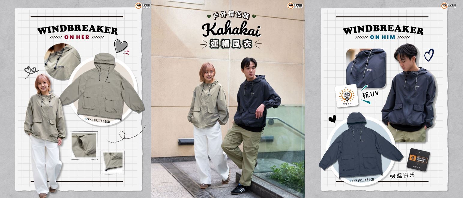 【戶外情侶裝 Kahakai 連帽風衣】 最近出外都好大風,體感溫度直線下滑 等 Kahakai 連帽風衣幫你擋風保暖啦 採用防曬物料,具有 UPF40 防曬系數,幫你全方位阻擋紫外線 具備吸濕排汗功能,同時阻擋冷空氣滲入,秋冬戶外活動零負擔 下擺加入可調式束口設計,兩側設有抽繩,讓你隨心調整鬆緊,穿搭上更靈活 除咗抽繩之外,兩側仲附有口袋,輕鬆收納小型隨身物品 配有炭灰、卡其兩種顏色,以經典百搭色系搭配各種機能性 男女穿著一樣好睇,同另一半一人一件著出街都冇問題 *各分店有更多款式,詳情請向分店職員查詢 *價格以店舖為準 指定允記分店: ----- WAN KEE ----- 旺角花園街53號地下 2332 7593 旺角花園街66-68號地下 2388 3348 旺角花園街87號地下 2787 5228 黃大仙中心北館1樓N136 - N137號舖 2759 7377 南昌V WALK 2樓 L2-56號及L2-57b號 2815 6028 將軍澳中心地下G20舖 2556 8810 上水彩園廣場3樓R46及R49號舖 2387 7188 ----- WAN KEE SPORTS ----- 旺角花園街47號地下 2392 6808 灣仔兆豐商業大廈地下及1樓 2529 0886 ----- NEW YOUTH ----- 旺角花園街49號地下 2388 0512 旺角花園街55-57號地下 2332 9993 元朗青山公路78-80號地下 2479 2880 荃灣廣場3樓368-369舖 2562 6068 上水廣場3樓338-351號舖 2672 2887 屯門良景廣場3樓317-318號舖 2146 8300