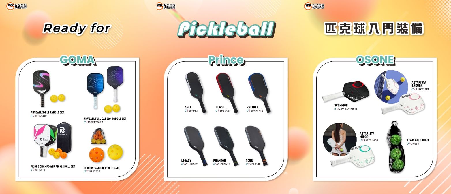 【Ready for Pickleball! 匹克球入門裝備】 Pickleball 熱潮有加無減,喺香港越嚟越Hit,你跟上咗未? 小編今期為你推介來自不同品牌嘅Pickleball 用品,不論你係初學者定進階玩家,都一定滿足到你嘅需求 快啲嚟指定分店選購心儀球拍,同朋友仔一齊展開Pickleball 運動之旅啦 *各分店有更多款式,詳情請向分店職員查詢 *價格以店舖為準 指定允記分店: 旺角花園街79號地下 2787 7118 旺角花園街102A及B號1樓 2337 8911 灣仔莊士敦道51-53號兆豐商業大廈地下及1樓 2529 0886 將軍澳中心地下G20舖 2556 8810 屯門良景邨良景廣場3樓317-318號舖 2146 8300 上水彩園邨彩園廣場3樓R46及R49號舖 2387 7188