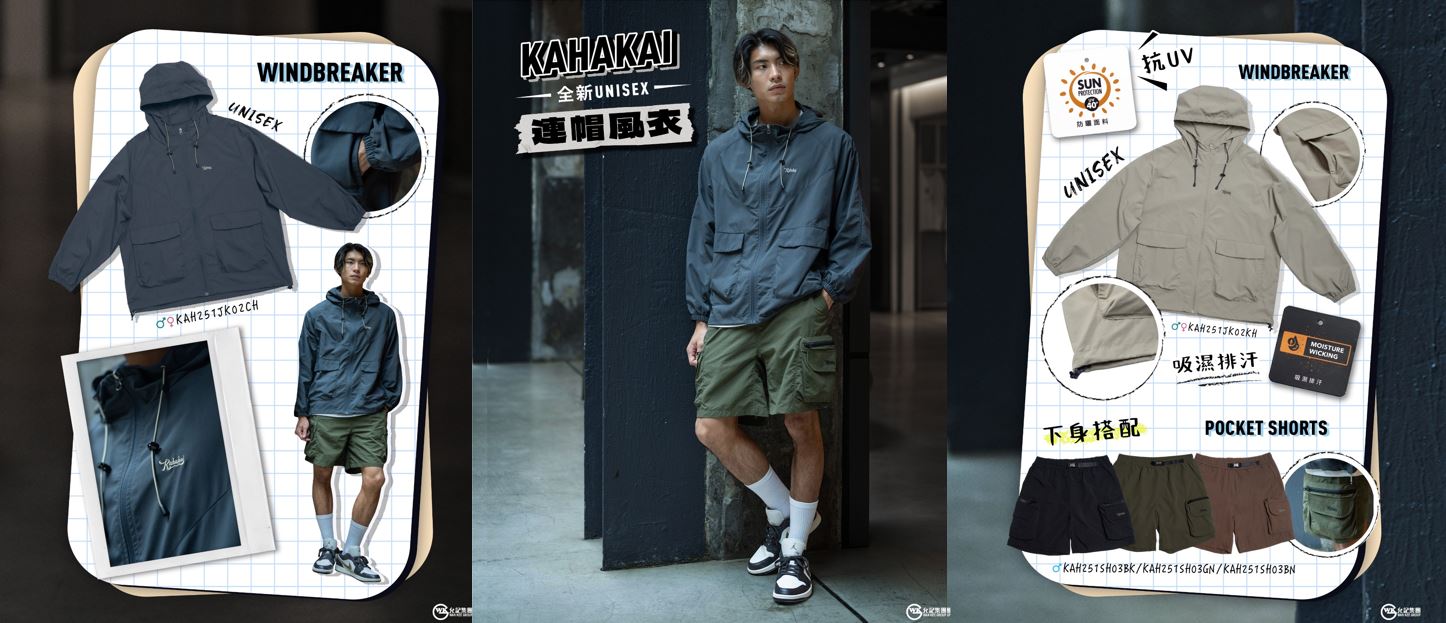 【KAHAKAI 全新Unisex連帽風衣】 踏入秋天最近早晚天氣稍涼,Kahakai 全新Unisex連帽風衣大派用場啦 採用防曬物料,具有 UPF40 防曬系數,幫你全方位阻擋紫外線 具備吸濕排汗功能,戶外活動都零負擔 下擺加入可調式束口設計,兩側設有抽繩,讓你隨心調整鬆緊,穿搭上更靈活 除咗抽繩之外,兩側仲附有口袋,輕鬆收納小型隨身物品 配有炭灰、卡其兩種顏色,以經典百搭色系搭配各種機能性,男女穿著都冇問題 防曬、舒適、實用,一件搞掂! *各分店有更多款式,詳情請向分店職員查詢 *價格以店舖為準 指定允記分店: ----- WAN KEE ----- 旺角花園街53號地下 2332 7593 旺角花園街66-68號地下 2388 3348 旺角花園街87號地下 2787 5228 黃大仙中心北館1樓N136 - N137號舖 2759 7377 南昌V WALK 2樓 L2-56號及L2-57b號 2815 6028 將軍澳中心地下G20舖 2556 8810 上水彩園廣場3樓R46及R49號舖 2387 7188 ----- WAN KEE SPORTS ----- 旺角花園街47號地下 2392 6808 灣仔兆豐商業大廈地下及1樓 2529 0886 ----- NEW YOUTH ----- 旺角花園街49號地下 2388 0512 旺角花園街55-57號地下 2332 9993 元朗青山公路78-80號地下 2479 2880 荃灣廣場3樓368-369舖 2562 6068 上水廣場3樓338-351號舖 2672 2887 屯門良景廣場3樓317-318號舖 2146 8300