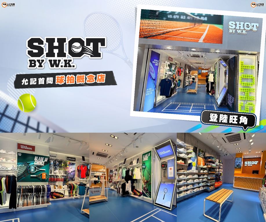 【允記首間球拍概念店 SHOT BY W.K. 登陸旺角】 球拍集中地!允記首間球拍概念店正式於旺角區插旗 新店 SHOT BY W.K. 匯聚各球類運動嘅球拍產品及配件,包括網球拍、羽毛球拍等,連近年爆紅嘅 pickleball 用品都有 除咗球拍之外,專用球鞋及訓練服飾都一應俱全,一條龍幫你準備好晒所有裝備 召喚熱愛球類運動嘅每一個你 行開旺角區又多一個地方買嘢啦,即刻嚟 SHOT BY W.K. 升級你嘅裝備啦 SHOT BY W.K 地址 旺角花園街79號地下 2787 7118